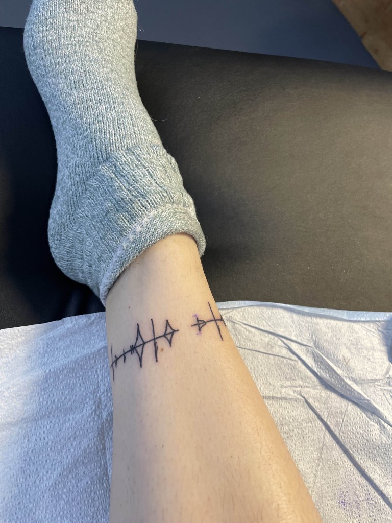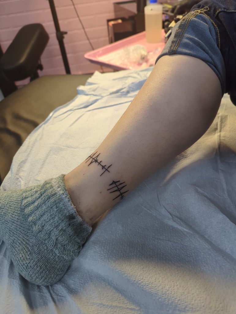 Fun tidbit- this was a double appointment, and Saige showed me her Sonic the Hedgehog PowerPoints on her phone while Courtney etched the Bridge Four glyph on my elbow once Saige was finished. If you’re a Stormlight fan, you might recognize this Alethi script as the First Ideal- “life before death, strength before weakness, journey before destination”.
