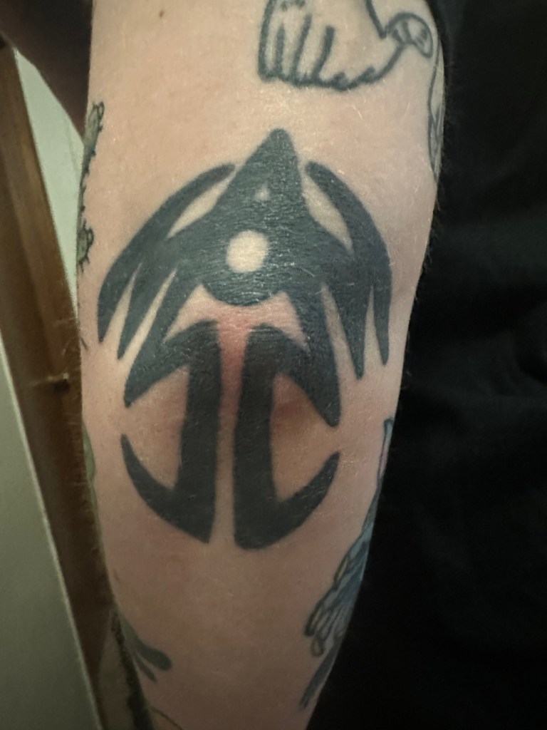 What could possibly be a better choice for an elbow tattoo than a design with thick, bold black lines? In all reality, the spot wasn’t actually that painful, but I know some people have a hard time with it. After my first Stormlight read, I knew I had to get the Bridge Four glyph somewhere. There really isn’t a more inspiring story than that of Kaladin and his struggle to lead his bridge crew to freedom.