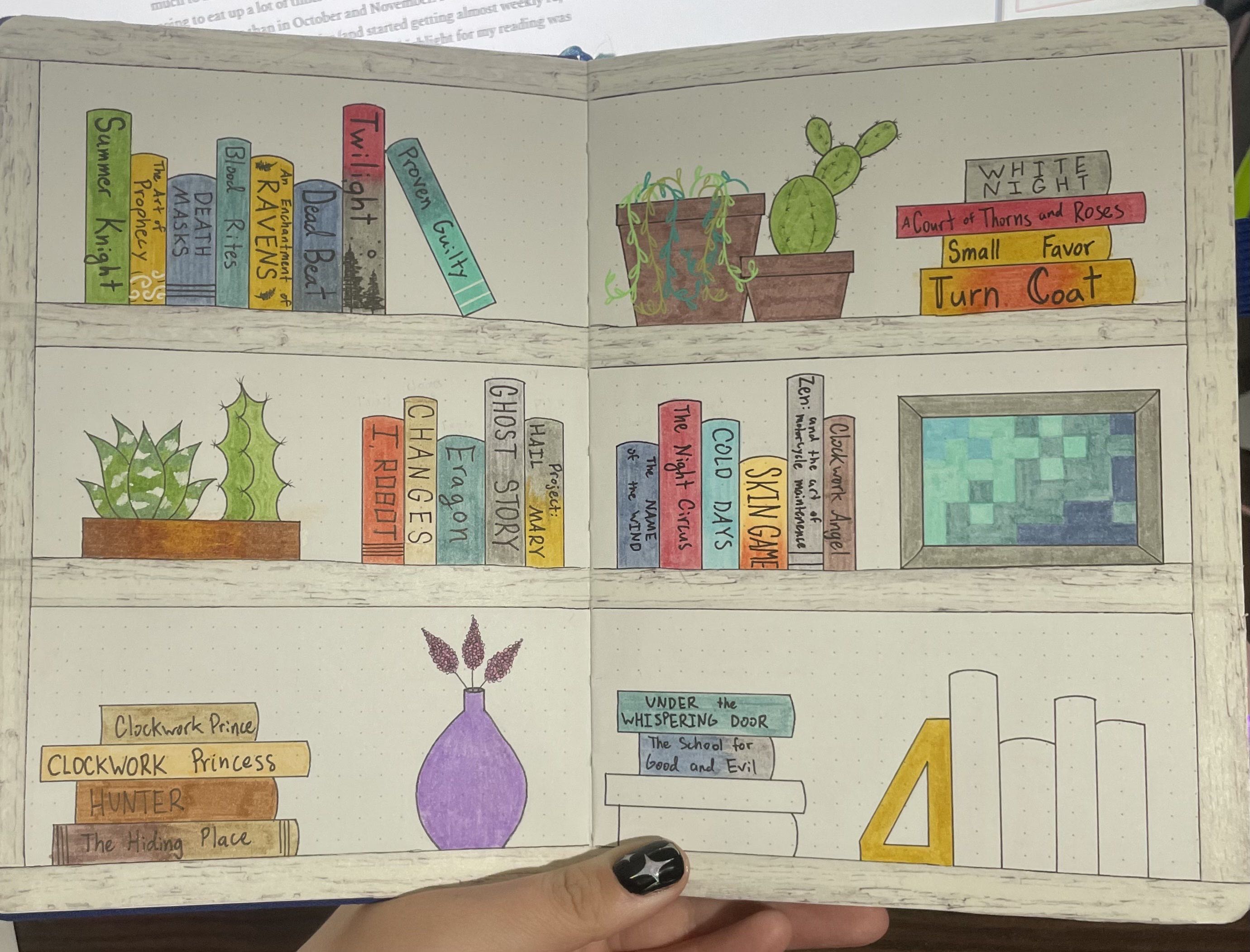 The main thing I kept up with was tracking my books. Goodreads wasn’t my tool of choice back then. It was all in my little bullet journals, which is the only reason today that my Goodreads tracks back through 2021. And look how darling these spreads are.
