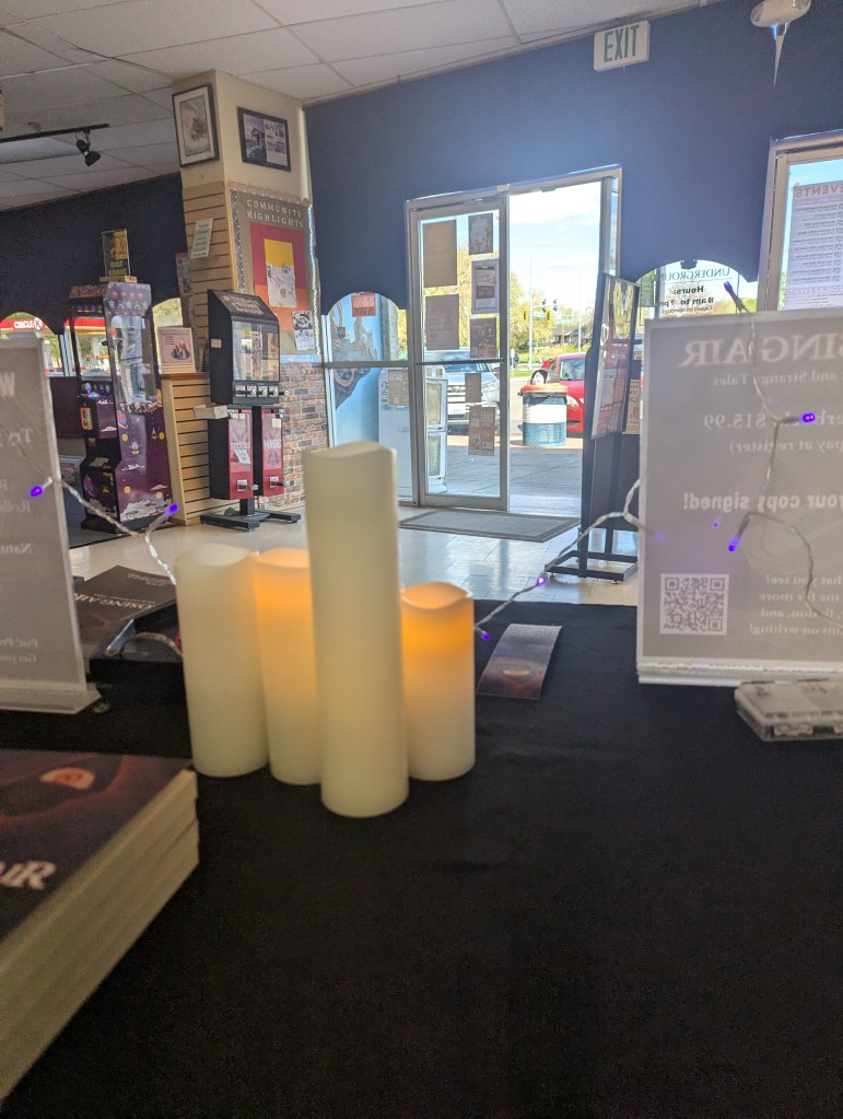 When my time was up, we went over our invoice, which really made me feel like a real adult author. The shop even bought two copies from me to sell on their shelves! So, if you are local but missed the signing, you can pick up a copy there still.